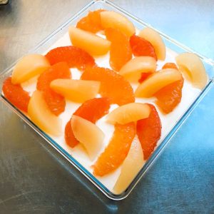 フルーツたっぷりのババロアケーキです。お好みのフルーツを乗せて楽しみましょう。